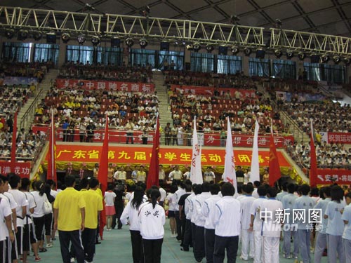 中新網佛山7月28日電 (孫建駒 蔡劍)廣東省第九屆中學生運動會28日下午在佛山市體育館圓滿閉幕。廣州、中山、佛山三個地市中學生代表團分別獲得團體總分前三名。