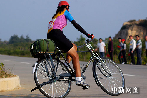 中新網10月28日電 十月二十八日下午,第六屆全國農運會“自行車載重”女子四十公斤二十公里比賽在福建惠安沿海大通道進行,吸引了眾多當地市民觀戰。