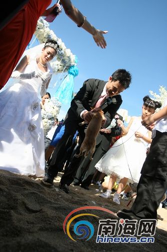 背著婚戒的小狗“優優”和“秀秀”閃亮登場(本網記者汪德芬攝)