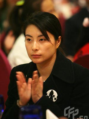 獨自前往的郭晶晶有些孤單,圖為她在為某領導講話勉強鼓掌。