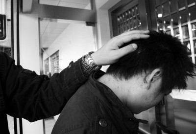 記者隨后來到瑞金二路派出所。在派出所門口,記者見到了被毆打的當事人——徐建平。此時徐建平的右側額頭部分有明顯的血跡。
