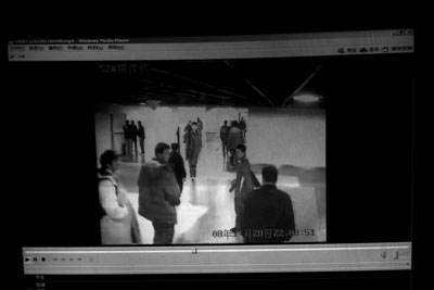 22點07分 劉煒第一個從客隊休息室出來,徑直向攝像頭方向走來,他的身后陸續跟出了蔡亮等7到8個上海隊隊員,劉煒(注:當時劉煒第一個走出了攝像頭的監控范圍)張望一會后,便返回了客隊休息室,跟劉煒出來的隊員也往回撤了一段距離,剛好正正的站在攝像頭下面。
