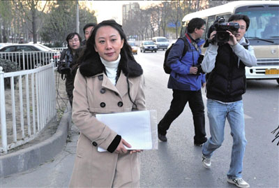 隨后,陸幽來到朝陽法院3層的涉外法庭,坐到原告席上。此時百度和網易的代理人也來到法庭,按照被起訴的順序坐好。兩分鐘后,黃健翔的兩名代理律師才來到法庭。書記員入庭,宣布此案陸幽已申請不公開審理,請記者和旁聽人員離開法庭。法院原定的網上庭審直播,也因此而作罷。