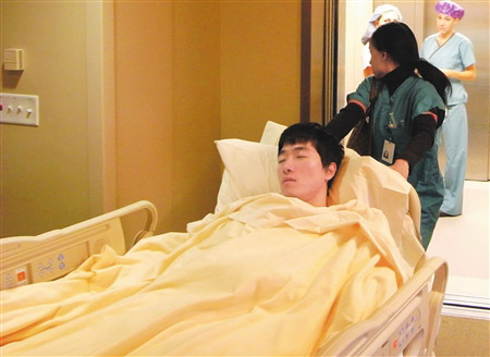 手術(shù)順利結(jié)束,醫(yī)生為劉翔套上護(hù)具。 圖片來(lái)源:華西都市報(bào)