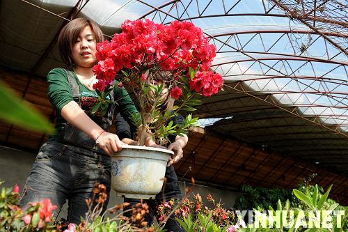 “籃球寶貝”姜琳是園林工程專業的學生,在大棚里和觀賞植物打交道是她的“主業”。(3月2日攝)新華社記者李鋼攝