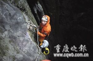 輪到丁長渝,隊員的心再次懸起。“我連地面瀑布都沒下降過。”丁長渝信心不足,將身體掛上瀑布邊沿,他的心更是懸到嗓子眼,1米、2米、3米……水流巨大的沖擊力讓他窒息,神智恍惚。突然,他手一滑,身體被沖得急速下降。“抓緊,抓緊……”隊友大喊。丁長渝拼命握住下降器,在下降器卡鎖下,他身體隨即制動,隨后成功落地,嚇得他和隊友癱坐在地。