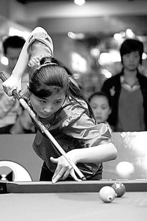 21歲的付小芳剛接觸臺球就是玩的16彩。從2002年開始在佳木斯叔叔開的球房里練球,叔叔就是她的啟蒙老師。付小芳于2004年到北京專門學習臺球。“我的目標就是獲得世界冠軍。”她每天花在臺球上的時間不會少于八九個小時。從2005年開始,付小芳就陸續奪得過一些全國冠軍。到2006年,付小芳在全國的知名度已經很高。