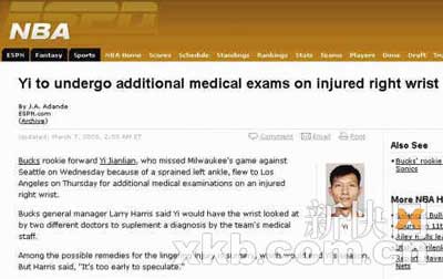 據(jù)ESPN報道,飛赴洛杉磯檢查傷病的易建聯(lián)遭遇壞消息,他受傷的右手手腕傷病波及韌帶,一旦確診韌帶傷情,很可能面臨接受手術(shù)的事實(shí)。