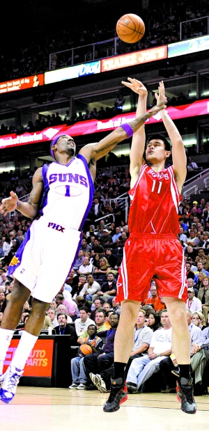 斯塔德邁爾身高臂長,而且充滿機動性的打法是姚明最頭疼的。每一次交手,斯塔德邁爾似乎總想用扣籃來壓制姚明,恰恰姚明在防守他時又很容易犯規(guī)。不過奧尼爾現(xiàn)在也在太陽,兩隊交鋒時,姚明更大的任務是防守奧尼爾。