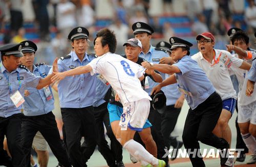 全運會天津隊球員狂奔100米追打主裁判(組圖)(2)