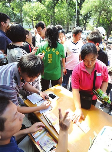 據球迷王先生介紹,他想要購買的是本月30日國安對陣魯能的比賽門票。“關系到國安今年能否在中超奪冠,作為十幾年的國安球迷,這場比賽我們必須去見證。”為買到門票,王先生昨天早上5點就到工體北門守候。當時排在他前面的人只有5個,按照當天該售票點發售500張票、每位球迷限買兩張票的情況,他覺得無論如何都能買上票。