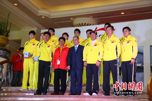 中新網(wǎng)5月9日電(記者 宗晨亮)2010年湯尤杯即將在5月9日-16日開打,國家羽毛球隊已抵達馬來西亞首都吉隆坡。大賽在即,近日國家羽毛球隊參加了“李寧-中國國家羽毛球隊誓師大會”,李寧到場與羽毛球隊總教練共同揭開了這次出征的新裝備,林丹、鮑春來等國家羽毛球隊主力隊員也身穿全新的比賽服裝集齊亮相,總教練李永波則代表國家羽毛球隊信心十足地表示“我們一定要在這次的湯尤杯上繼續(xù)取得佳績,力爭衛(wèi)冕。”