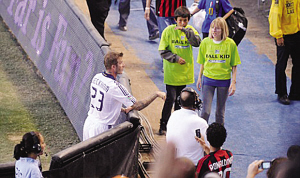 不過更令球迷關注的是,在這場小貝重回銀河隊的首個主場比賽中,主場的銀河隊球迷對小貝不忠于球隊、想要離隊重返米蘭或轉回英超的表態非常不滿,現場的銀河隊球迷更是不停地狂噓小貝。而在人稱“洛杉磯暴走隊”的銀河隊死忠球迷區,更是懸掛了各種嘲諷、奚落甚至辱罵小貝的大幅標語。有的標語寫到:滾回家吧,騙子!有的則寫到:你做的事很邪惡,而你自己本身就代表邪惡!