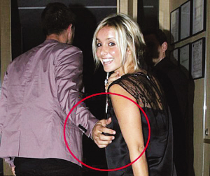 雷德克納普背對妻子伸出右手似乎想拉住露易絲的手臂,然而由于她正轉身面對鏡頭,于是雷德克納普的手掌卻不偏不倚地落在了胸部,而這一幕恰好被門口的一眾攝影師抓個正著。對于自己抓住了妻子的什么部位,小雷德克納普似乎毫無感覺,但面對鏡頭的露易絲則沒有這么好運,她只能尷尬地與攝影師們開笑說丈夫只是順手。