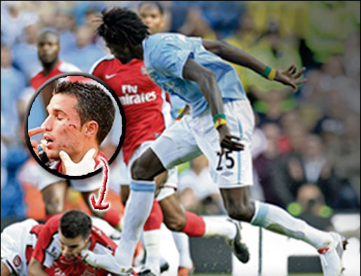 在攻進曼城的第三粒進球后,他狂奔百米來到阿森納球迷面前慶祝,結果這一挑釁行為讓他領到了黃牌警告。比賽中他還曾踩到“槍手”范佩西的臉,后者頓時掛了彩,但阿德巴約并未因此受到主裁判的懲罰。不過,荷蘭人賽后鄭重聲明,他認為阿德巴約是故意傷人,他為此感到失望。