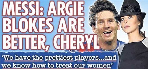 謝麗爾被認為是英國最漂亮性感的女人,而丈夫阿什利-科爾卻因為婚外“偷吃”辜負了她。對此梅西坦言:“也許謝麗爾現在有點恨英格蘭球員。如果她愿意在世界杯上尋求另一支球隊去支持,那么非阿根廷莫屬。我們能踢出世界上最漂亮的足球,我們有世界上最英俊的球員,而且阿根廷的男人知道善待他們的女人。”