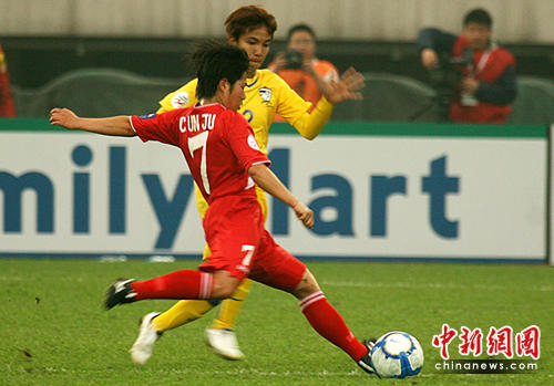 中新網成都5月20日電(記者劉忠俊 劉賢 楊杰)2010年女足亞洲杯A組比賽拉開戰幕,亞洲勁旅朝鮮女足迎戰泰國女足。開場4分鐘朝鮮隊連進2球,下半場再進一球,以3:0大勝泰國隊。