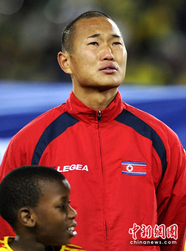 中新網6月16日電 今天凌晨2:30,南非世界杯迎來了G組的另外一場小組賽,由五星巴西迎戰朝鮮隊。本場比賽是朝鮮隊44年來再一次出現在世界杯賽場上。當朝鮮國歌響起的那一刻,球隊前鋒鄭大世淚流滿面。