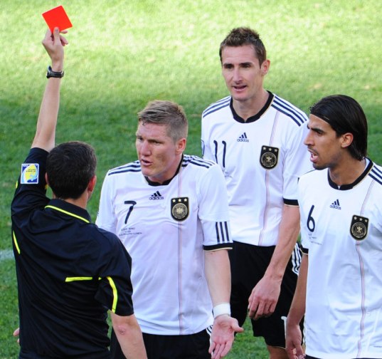 中新網6月18日電 在首輪打出漂亮足球的德國隊,18日晚在世界杯D組第二輪的比賽中倒在了塞爾維亞腳下。而主導這場比賽的,不是塞爾維亞隊的進球隊員約萬諾維奇,而是出示了9張黃牌1張紅牌的西班牙裁判烏迪亞諾。正是他在上半場37分鐘就將德國隊的主力前鋒克洛澤紅牌罰下,才最終主導了這場1-0的比賽。