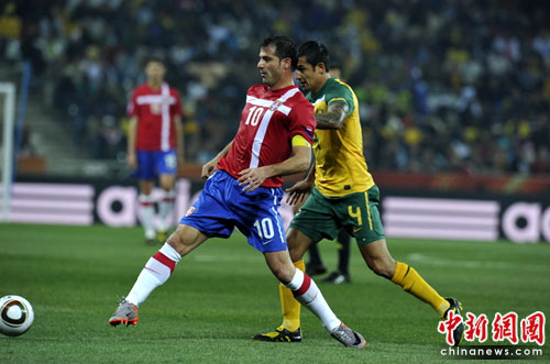 中新網6月24日電 今天凌晨,南非世界杯D組進行了最后一輪的較量。塞爾維亞在內斯普雷特的姆伯貝拉體育場迎戰澳大利亞隊。雖然澳大利亞2-1擊敗塞爾維亞隊,但仍然因為凈勝球劣勢不敵加納,無緣小組出線。