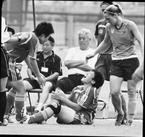 馬曉旭是4月1日受傷的,當時女足正在踢熱身賽,與第二次受傷一樣,在沒有任何征兆甚至沒有任何拼搶的情況下,馬曉旭突然倒地。看著她抱著右膝痛苦的樣子,全隊人心都提到了嗓子眼。檢查結果證明了最壞的猜測,那條脆弱的十字韌帶再次斷裂。在昆明度過了漫長的4天之后,5日下午,馬曉旭與幾位大連隊友返回大連。當她坐著機場的輪椅被推出來時,早已守候在機場大廳的曉旭媽媽急急迎上去,把一副拐杖遞給女兒,扶女兒站起來走出機場,此時曉旭母親已淚流滿面。