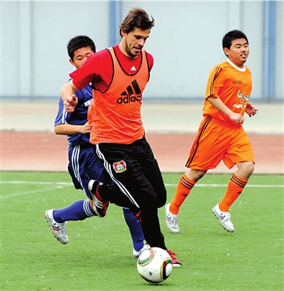 由于球員傷病或去國家隊(duì)備戰(zhàn)世界杯,勒沃庫森隊(duì)中阿德勒、克羅斯和基斯林等無法來華,不過前德國國腳M·弗里德里希以及辛基維奇、卡斯特羅和黑爾默斯等明星球員均隨隊(duì)前來,全隊(duì)最大牌的還是德國前國家隊(duì)主教練沃勒爾。昨天下午,弗雷德里希等球員來到回民中學(xué),在球場上對學(xué)校小球員們進(jìn)行了技術(shù)指導(dǎo)。