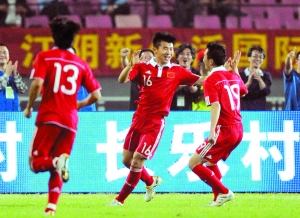 現(xiàn)場球迷的熱情被點(diǎn)燃,“3比0”的喊聲響徹全場。中國隊沒有辜負(fù)球迷的期望,替補(bǔ)出場的李學(xué)鵬搶斷后突破至對方小禁區(qū)內(nèi)抽射破門,將比分鎖定為3比0。整場比賽,中國隊共出場22名隊員。