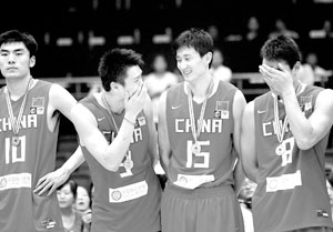 昨晚的頒獎(jiǎng)儀式上,朱芳雨、孫悅、杜鋒三人互相打鬧、談笑風(fēng)生。而就在他們身邊,王治郅、易建聯(lián)、李曉旭等隊(duì)員則神情黯淡、默默不語(yǔ)。
