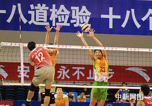 中新網(wǎng)漯河8月29日電(記者 關(guān)濤 師紅壘 通訊員 林波)8月28日,2009年全國男排錦標賽(雙匯賽區(qū))在漯河市體育館展開了最后一天的八場決賽。引人注目的東道主河南隊與江蘇隊冠亞軍爭奪戰(zhàn)中,5局激烈較量之后,河南隊以2:3遺憾敗北,再次與冠軍失之交臂屈居亞軍,江蘇男排問鼎冠軍,