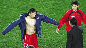 18日的訓練中,志尹南淹沒在一大群朝鮮隊員中。他們訓練的馬克胡龍球場算是本屆世界杯最為“寒磣”的場地之一,即便晚上燈光耀眼,周圍也壓根沒有人注意誰在場內訓練。寒氣襲來,很多家庭門口都生起了火堆。在這里,只有一片片平房和隨處可見的集貿市場,還有頭頂著一大堆貨物的大嬸。“可能這里很像朝鮮。”一位記者調侃道。