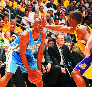 火箭雖然已經出局,但巴蒂爾防守科比的遮臉絕技讓球迷津津樂道。對陣湖人,巴蒂爾的主要任務就是防守科比,在對抗中,不管科比是多么難以阻擋,巴蒂爾始終遵循著“一只手蓋在臉上”的防守法則。7場西部半決賽打下來,科比一定已經記清了巴蒂爾掌心的每條紋路。伸手擋臉看似簡單,其實是個技術活,難就難在如何不碰到對手的臉。也許是受到巴蒂爾的啟發,科比昨天在防守掘金后衛比盧普斯時也用了遮臉這招,但科比的原地“發功”技術含量和巴蒂爾比起來還是遜色不少。巴蒂爾的做法是在快要發生身體接觸那一刻在空中轉體,右腿側伸,身體跟科比的身體略略交錯,從而保持手掌與對方面龐的距離,隨著對手投球完畢,巴蒂爾的手掌便收縮回來。這種動作難度很高,但效果不錯,不僅能擋住對手的投球路線,也能分散對方的注意力。