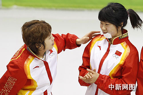 一開始,記者們以為張會是在比賽中受的傷,但怎么也想不明白王濛的冰刀怎么會傷到張會的臉。后來通過本社記者拍下的照片才發現原來張會是在中國姑娘撲向教練慶祝勝利時受的傷。