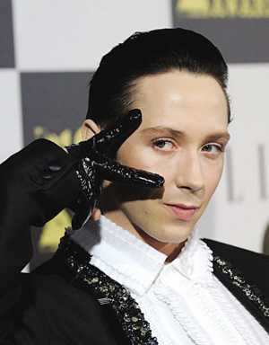 美國(guó)當(dāng)?shù)貢r(shí)間2010年3月6日,有“冰上水仙男”之稱的美國(guó)花滑選手約翰尼·威爾給了人們一個(gè)驚喜,出現(xiàn)在了洛杉磯的某電影節(jié)上,當(dāng)天威爾大擺pose,魅力四射。