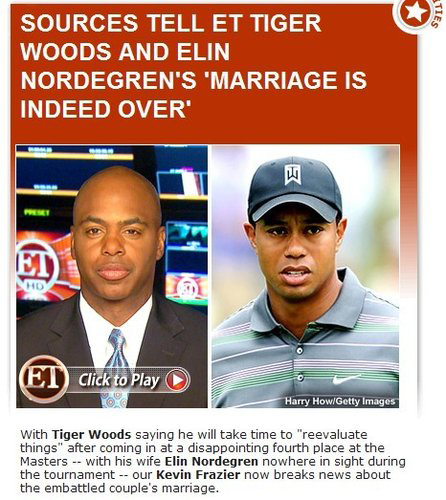 北京時間4月14日,據(jù)美國電視媒體《今夜娛樂》(Entertainment Tonight)爆料,高爾夫名將伍茲與妻子艾琳的婚姻已經(jīng)走到盡頭,兩人即將簽署離婚協(xié)議。