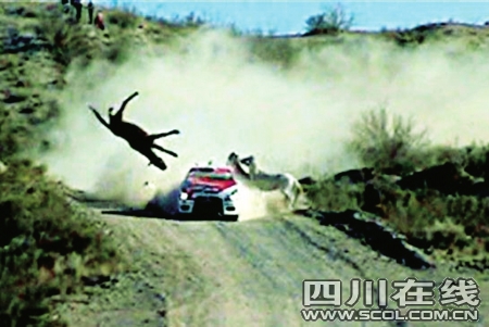 阿根廷賽車手費·比亞格拉正在阿根廷南部參加汽車拉力賽。賽車行駛到內格羅河省的羅卡將軍城附近時,遇到三匹馬正在穿越公路。比亞格拉只看到其中兩匹,等發現第三匹馬時已經來不及躲避了,賽車和馬猛烈相撞后將馬撞得凌空而起。這起事故造成這輛三菱賽車的前半部分損傷不輕,但是比亞格拉僅僅因為事故耽誤了30秒鐘,隨后駕駛著賽車繼續前進,并且完成了當天的全程比賽。(新華社)