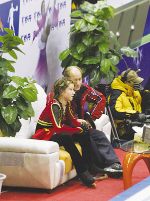 走下賽場,男孩一臉懊惱,父親戈軍卻毫不在意。“這是他第一次參加大型比賽,太緊張了,根本沒發(fā)揮出自己水平。”他告訴記者,開始轉入成人組比賽后,戈米沙遇到了一些困難。身高的猛增導致動作的不協調。“他今年長了半個頭”,父親比劃出大概有8厘米左右。“不過這樣也好,我提倡的是挫折教育。多失敗幾次,對米沙的成長有好處。”