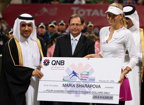 總獎金250萬美元的WTA一級大賽多哈公開賽冠軍周一凌晨成為俄羅斯美少女莎拉波娃最新的戰利品,她在決賽中擊敗同胞茲維娜列娃,將自己今年的連勝紀錄擴大到14場。