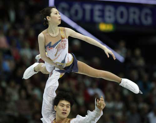 18日在瑞典哥德堡進(jìn)行的2008年花樣滑冰世錦賽雙人滑短節(jié)目比賽中,2006年冬奧會(huì)銀牌得主張丹/張昊力壓群雄,以74.36的高分(其中技術(shù)水平分43.50分,節(jié)目?jī)?nèi)容分30.86分)分暫居第一,同時(shí)創(chuàng)下了短節(jié)目的史上個(gè)人最好成績(jī)。