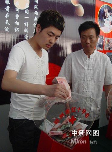 5月27日下午兩點半,國內著名斯諾克球員田鵬飛,特地從大連趕到此次比賽現場,捐出現金3萬元人民幣,為災區人民奉獻自己的愛心。