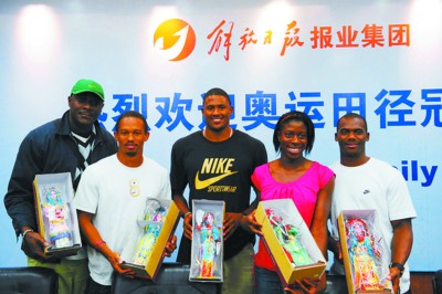 座談會上,還有北京奧運會男子4×100米冠軍成員,牙買加隊的弗雷德和卡特,北京奧運會女子400米金牌獲得者奧古魯格,雅典奧運會和北京奧運會兩屆女子三級跳冠軍姆邦哥。他們和奧利弗,都是第一批抵達上海參加黃金大獎賽的運動員,此次受到解放日報報業(yè)集團和解放日報領導的熱忱接待,并因收到了如穆桂英、孫悟空、趙云等京劇人偶,以及中國筷子等極具中國特色的禮物,而充滿驚喜。