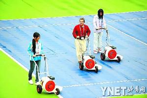 遲大衛(wèi)說,今年在中網(wǎng)賽場中待命的24臺吹水機(jī),全部都經(jīng)過了北京奧運(yùn)會的“鍛煉”,“這些機(jī)器是今年中網(wǎng)新購置的賽場設(shè)備,它們首先在奧運(yùn)賽場使用之后,才進(jìn)入中網(wǎng)賽場。奧運(yùn)會期間,這些機(jī)器在奧運(yùn)網(wǎng)球場地工作人員的正確使用下,幫助一小時(shí)內(nèi)重啟比賽。特別是奧運(yùn)會第一天就下了大雨,但是這些吹水機(jī)很好地解決了問題。”遲大衛(wèi)說,“今年中網(wǎng)這些機(jī)器繼續(xù)‘服役’,志愿者使用起來很熟練,因?yàn)樗麄冎耙呀?jīng)逐步掌握了使用要領(lǐng)。”