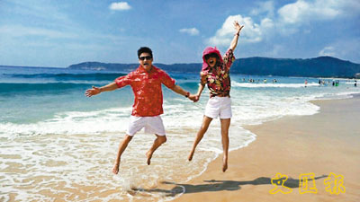該報稱,“國慶”前夕,從未到過三亞的楊威和楊云專程前來考察,對婚禮舉辦地點很滿意,當(dāng)?shù)鼗閼c公司承諾將致力于讓婚禮“浪漫得讓人心醉”。楊云從三亞考察完婚禮地點后,抑制不住將做新娘的喜悅心情,把與楊威在三亞海濱的甜蜜照片放到了博客上,著紅衣白褲情侶裝的一對金童玉女,映襯著藍(lán)天、碧海、麗日,濃得化不開的濃情蜜意,向世人訴說他們愛的羅曼史。