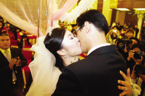 昨天張娜與相戀十多年的男友周靖斌終于走上紅地毯,同是天津人的兩人很早就認定了對方。周靖斌是原天津擊劍隊隊員,因為天津擊劍隊內競爭激烈,周靖斌沒打出來,退役后一直在天津市體育館工作。