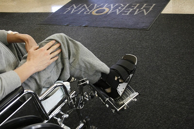 或許是在安靜的醫院待久了,好動的劉翔一出赫曼紀念醫院就沖著所有人做起了鬼臉,那個熟悉的劉翔又回來了。不過劉翔的這次亮相有點不同:“飛人”暫時棲息在輪椅上,右腳還包裹著厚厚的紗布,外面再加上一個高至膝蓋下方的護具。