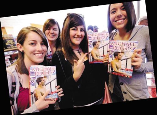 菲爾普斯昨日在洛杉磯簽售自己的新書《無極限:成功的意志》,上百名他的粉絲在書店門口排起了長隊(duì),其中不乏眾多女性支持者,她們?cè)谫I到書后興奮地對(duì)著鏡頭展示。