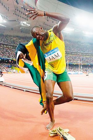 博爾特在今年北京奧運會上贏得比賽之后,都會用一種前后搖擺的舞蹈來慶祝自己的勝利。這種舞蹈是由大衛·史密斯創作的。據警方透露,史密斯在金士頓的一家夜總會和兩名男子發生爭吵,隨后,兩名男子掏槍擊中了史密斯的頭部和胸部,致其傷重而亡。京友