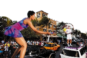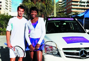 美國名將大威和本賽季大紅大紫的穆雷近日為邁阿密大師賽造勢,穆雷和大威分別站在轎車頂端對打,大秀“高空網球”。由于是本土作戰(zhàn),大威在邁阿密人氣極高,被捧得猶如女皇一般。比賽中,大威穿著靚麗的連衣裙,化身成“花蝴蝶”。