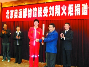 北京奧運博物館籌備辦公室主任侯明上午在接受本報記者電話采訪時介紹,劉翔親自參加了今天的捐贈儀式,他表示:奧運會在中國舉辦意義重大,而我能成為中國第一棒火炬接力手,祖國和人民給了我極大榮譽。劉翔坦言:北京奧運會已圓滿結束,今天我把這枚火炬捐出來,說實話心里有一絲不舍,但是為了弘揚奧運精神,我決定把它鄭重交給北京奧運博物館,讓它陳列在博物館中,讓更多人看到它,看到北京奧運會的圓滿成功,看到偉大祖國的日益強盛。