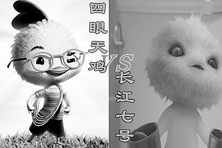 不能不提的是,盡管“長江七號”是周星吃花了兩年時光打造的外星寵物,但這個外星主角還是太過類似于迪斯尼幾年前的“四眼天雞”,不禁令人懷疑是否又是港片抄襲陋習在作怪。