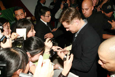 昨日上午的記者會更像是萊昂納多的影迷見面會。熱情的粉絲早早包圍了發布會現場,高聲尖叫萊昂納多的名字。原本安排上臺簡短發言,但萊昂納多的聲音每每被粉絲的尖叫聲兔弧2還馕緩美澄朊饜遣⒚灰虼碩腥魏尾宦炊嗟鼻濁械馗懊源蛘瀉簦骸癏i!”發布會結束后,萊昂納多還主動走到粉絲居多的地方,與他們握手簽名。